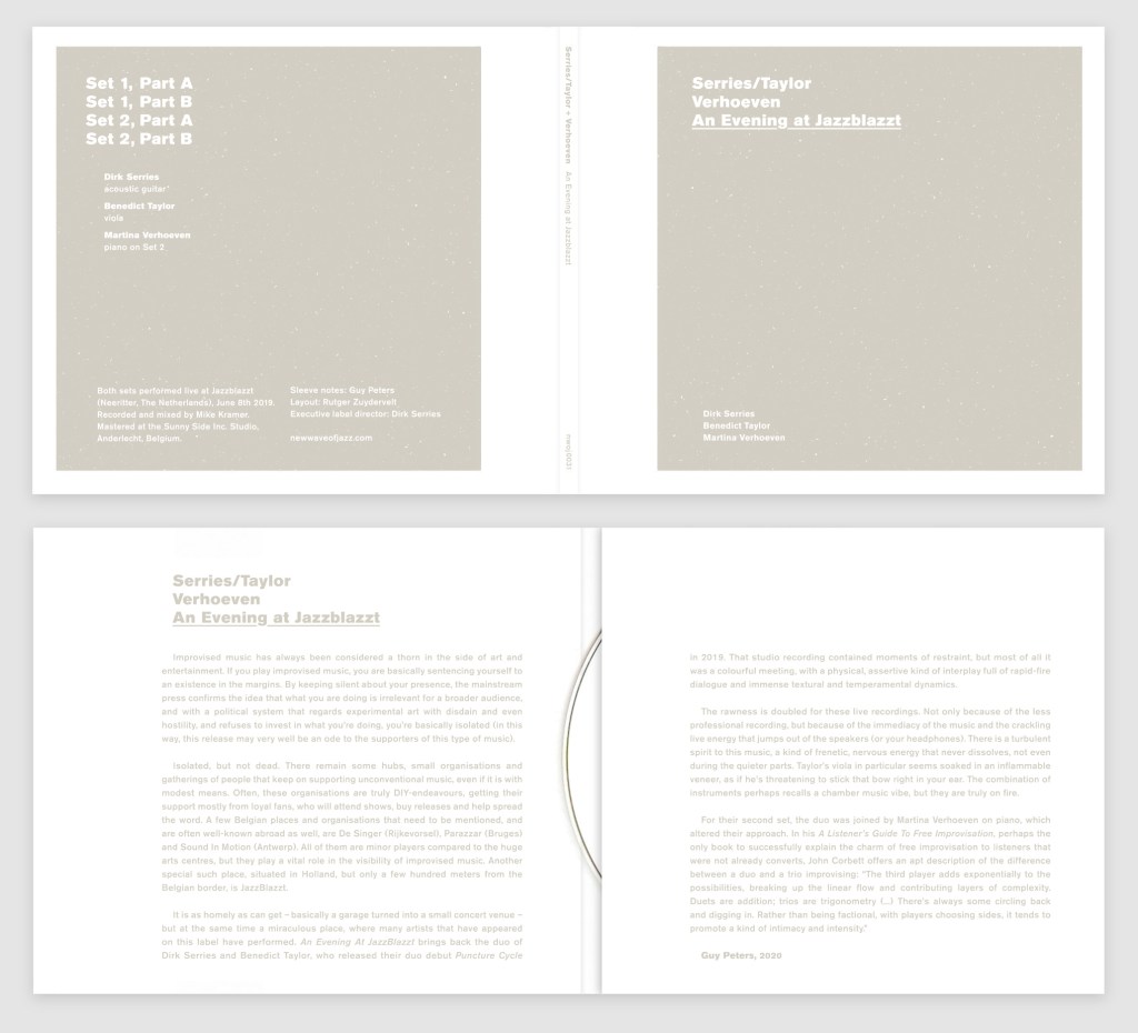 Belgian and veteran percussionist Chris Joris wrote for magazine Jazz & Mo a short but lovely to-the-point review of TAYLOR & SERRIES + VERHOEVEN’s ‘An Evening At Jazzblazzt’ album.