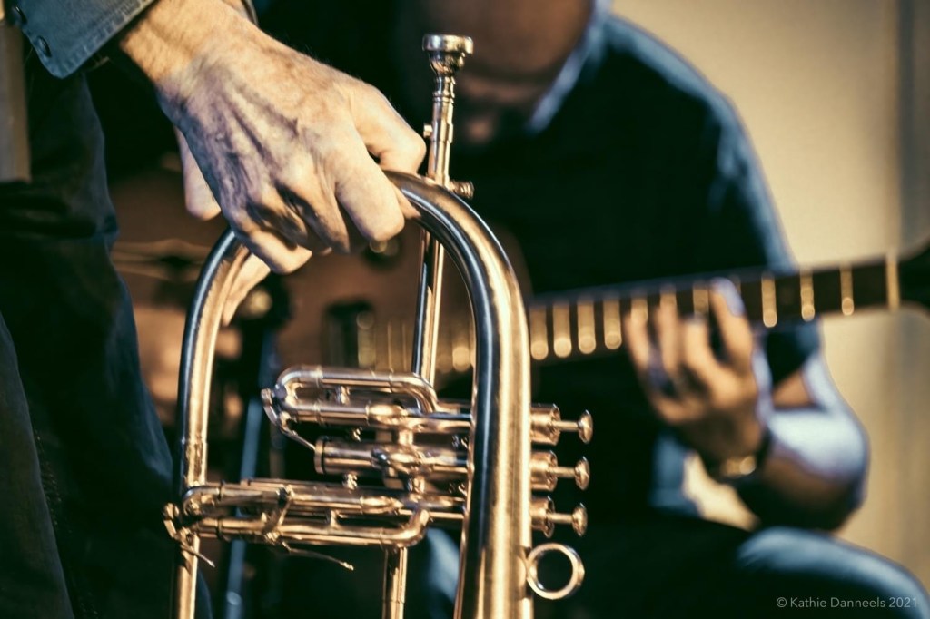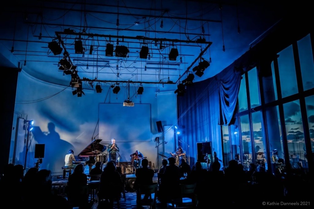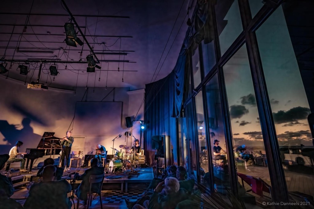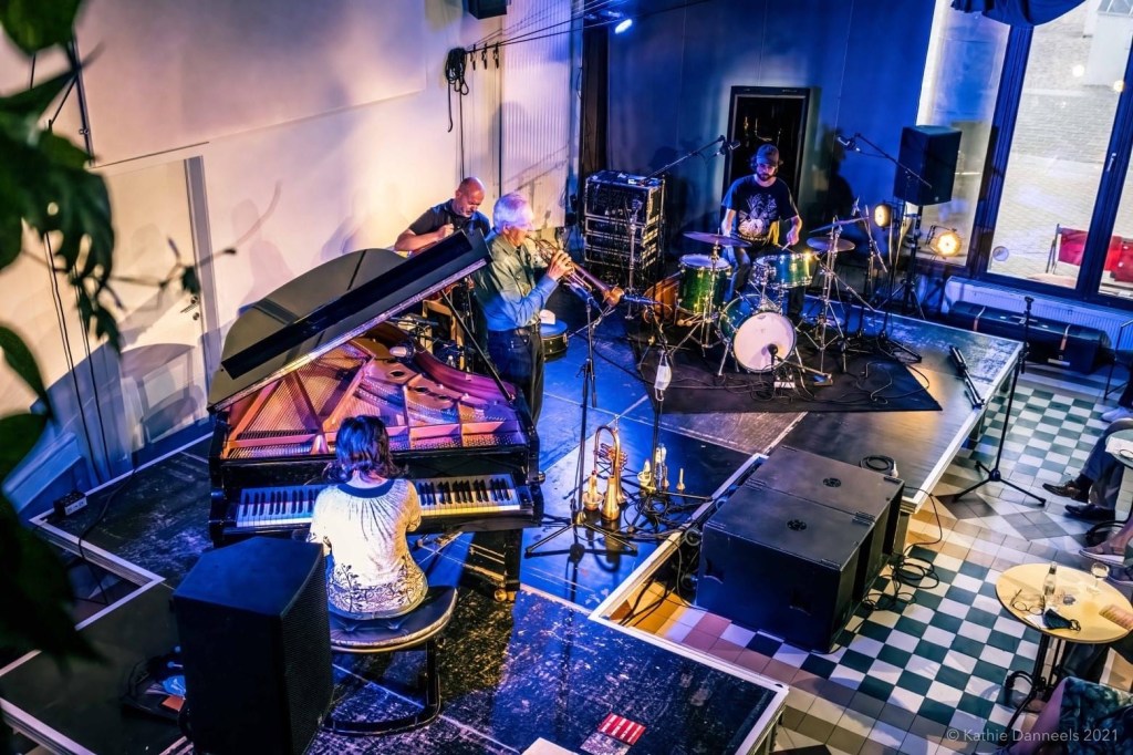 Ad-hoc quartet of PATRICK DE GROOTE on trumpet, MARTINA VERHOEVEN on grand piano, ONNO GOVAERT on drums and DIRK SERRIES on guitar presented A New Wave Of Jazz on invitation by KAAP at their beautiful venue in Oostende with view on the North Sea and played a fantastic concert. Photos are by in-house photographer Kathie Danneels.