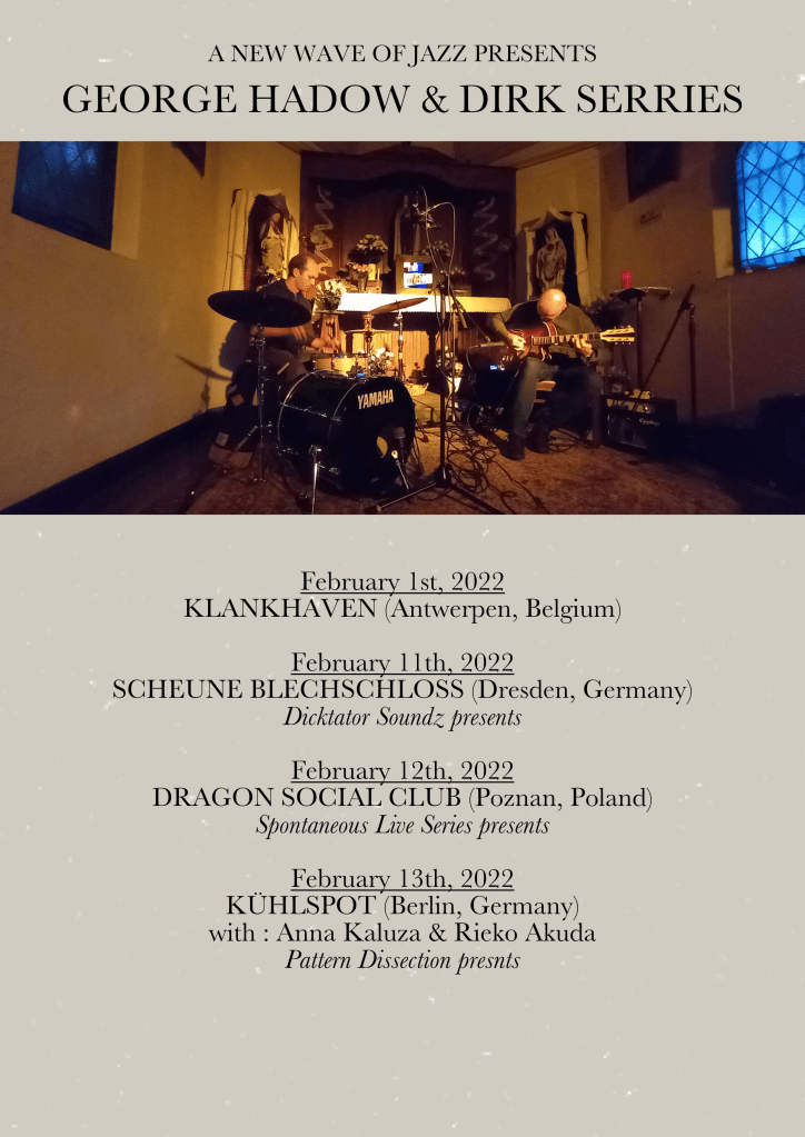 This evening GEORGE HADOW (drums) and DIRK SERRIES (guitar), both label affiliates, are kicking off their series of 4 concerts to promote their CHAPEL album on Creative Sources. The kick-off is at this lovely new venue KLANKHAVEN in Antwerpen (Belgium). See you down the road.