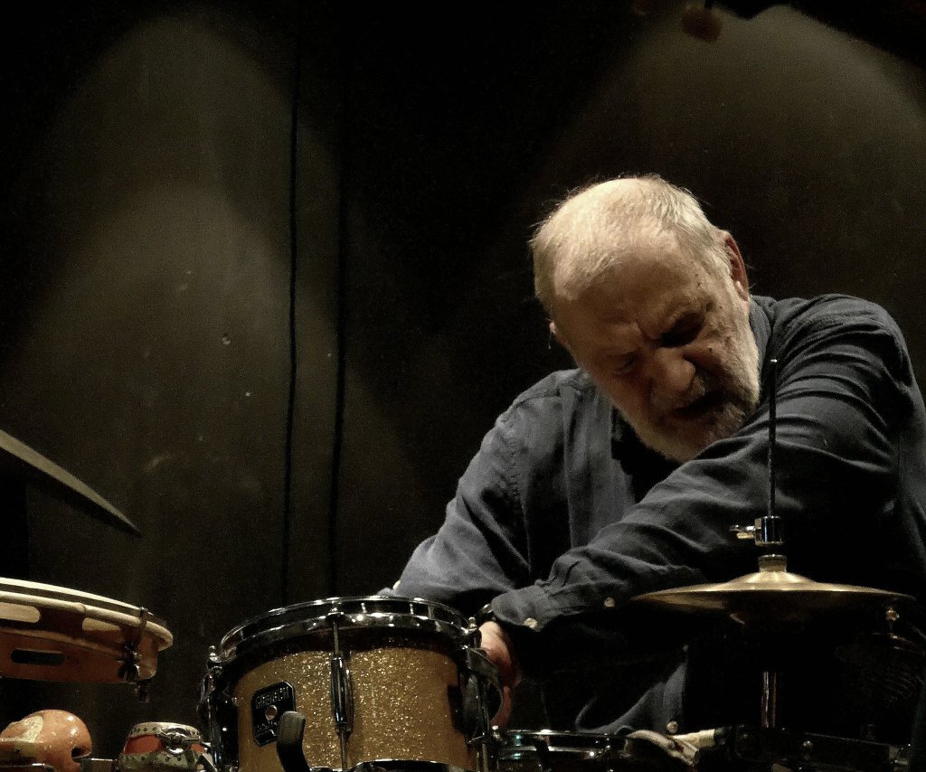 Een zomeravond en dus de ramen wijd open. Alleen waar je dan niet op rekent is op een amateurkoor, waarvan de leden buiten een wedstrijd lijken te houden in wie het meest vals kan zingen. Dan de ramen maar weer dicht en gelukkig weten deze drie musici de kunsten van dit koor al vrij snel te overstemmen. Terwijl Gregov en Serries elkaar afwisselen met krachtige interventies, weet Vanderstraeten de vrij gevallen gaten netjes op te vullen met een breed scala aan klanken. Vanderstraeten is geen drummer, ik vraag me af of hij nog ergens een onvervalst drumstel heeft staan, maar een verzamelaar van allerlei attributen waar je geluid mee kunt maken, letterlijk een koffer vol. Een handvol kleine trommeltjes dient daarbij vaker als ondergrond dan als instrumenten om zelf te bespelen. Vrije improvisatie moet je vooral zien en dat geldt des te meer als Vanderstraeten aan het werk is.