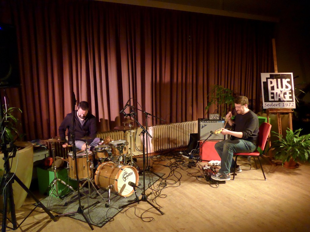 “We zijn al ongeveer een half uur onderweg tijdens de eerste set als ik voor het eerst iets hoor dat lijkt op gitaarspel, dat terwijl de Engelse gitarist Matthew Grigg, zoals gezegd, al enige tijd bezig is. Het kenmerkt in hoge mate dit concert in de Plus Etage, georganiseerd door Dirk Serries’ A New Wave of Jazz, waarin niets is wat het lijkt. Een drummer, de al even vrolijk buiten de hokjes kleurende Friso van Wijck en een gitarist, die alles doen behalve traditioneel drummen en gitaarspelen. Wat we dan wel krijgen: grenzeloze creativiteit, volop experiment en een breed scala aan geluiden die ik het ene moment eerder associeer met een wandeling door de natuur en het andere moment met een wandeling door een drukke stad.