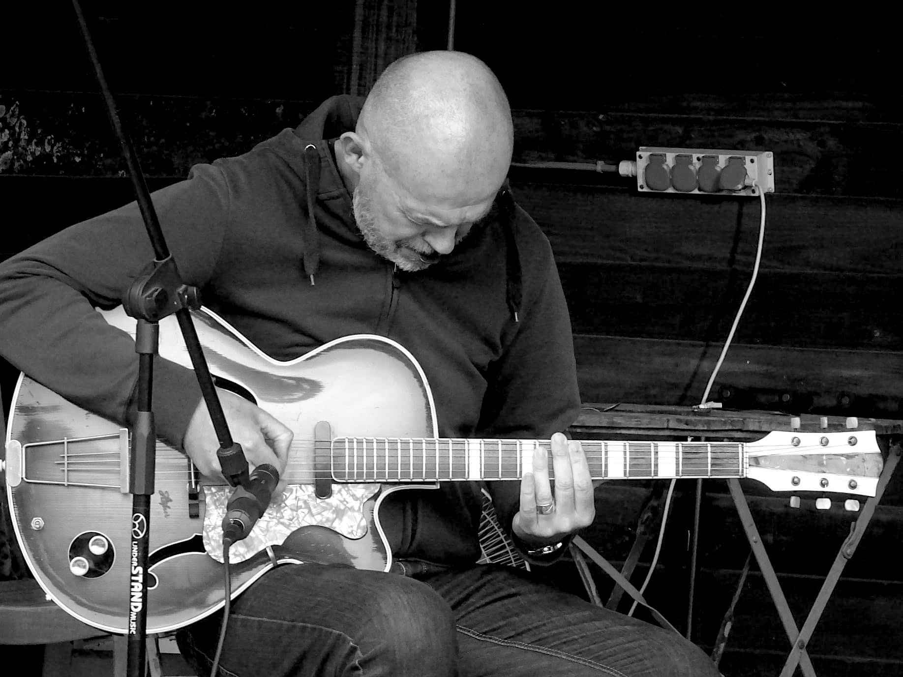 Het concert van vanavond wordt georganiseerd door JazzBlazzt, een organisatie die net als de muzikanten altijd bezig is en bij tegenslag zoekt naar uitwegen om toch livemuziek te kunnen bieden. De openluchtlocatie Ozoland leent zich uitstekend voor een concert waarbij de nog geldende coronaregels kunnen worden nageleefd. Een twintigtal mensen vindt de weg naar Hunsel om te genieten van twee akoestische sets.