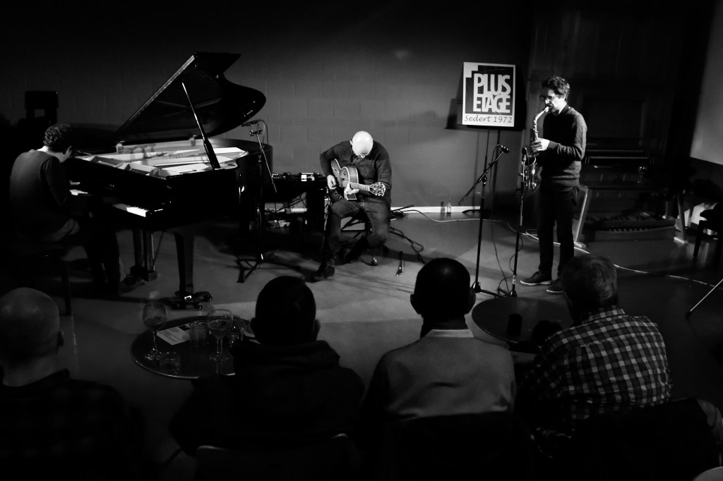 Last Saturday TRANSITION UNIT, the brand-new trio of RODRIGO PINHEIRO (piano), JOSÉ LENCASTRE (sax) and DIRK SERRIES (guitar), landed in jazzclub PlusEtage to promote their debut album FACE VALUE. Lovely audience, great vibe and Ben Taffijn of Nieuwe Noten was there and wrote a nice review. The photos are courtesy of Marcel Thomassen of PlusEtage and Jef Van den Broek.